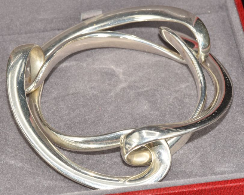 Georg Jensen 'Infinity' silver bangle designed by Regitze Overgaard, designed for the 100th anniversary of Georg Jensen silversmithing, in original box, 84.4g
