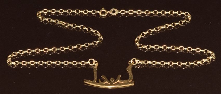 A 9ct gold necklace with Arabic name decoration, 5.9g, 40cm
