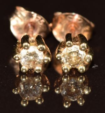 A pair of 9ct gold earrings each set with a round cut diamond of approximately 0.12ct, 0.9g