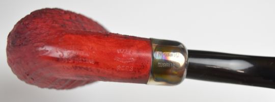 Three Peterson Sherlock Holmes smoking pipes comprising 'Hansom' With Silver Spigot, Pipe Of The Year 2022 and 2023, all boxed with leather pouches and appear new / unused