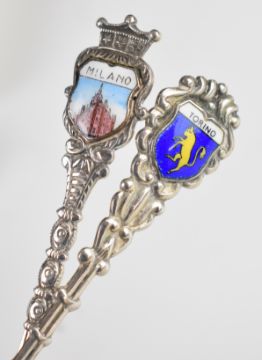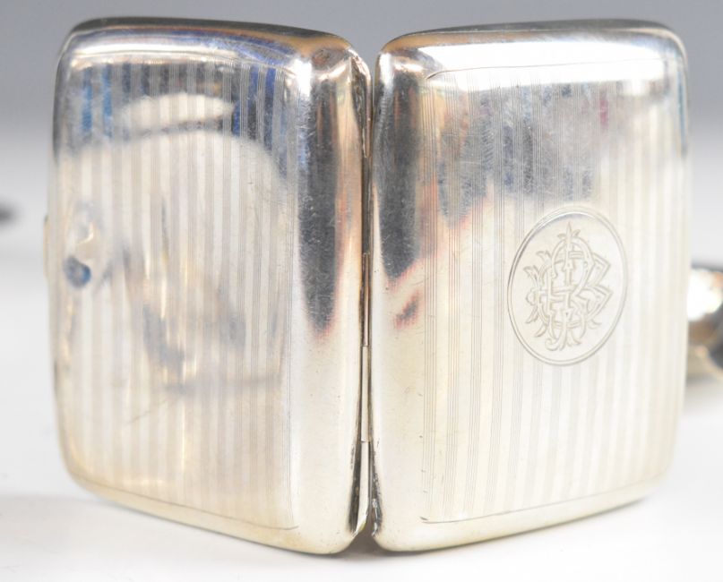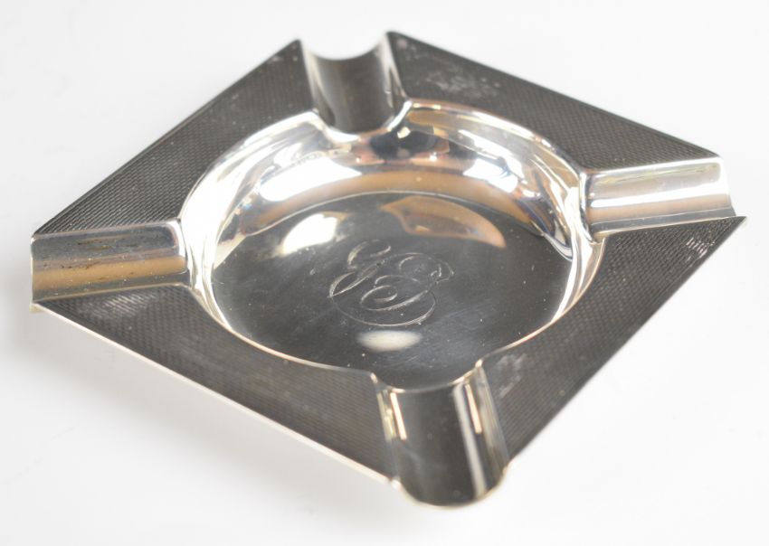 Elizabeth II feature hallmarked pin tray, Art Deco style hallmarked silver ashtray and a hallmarked silver cigarette case, weight 227g together with a quantity of hallmarked and continental silver collector's spoons including 800 grade examples, weight 67g all in