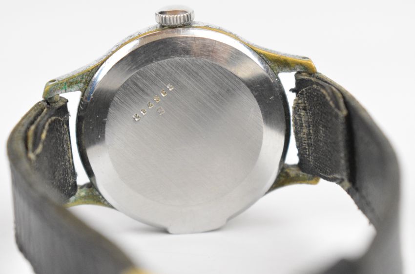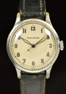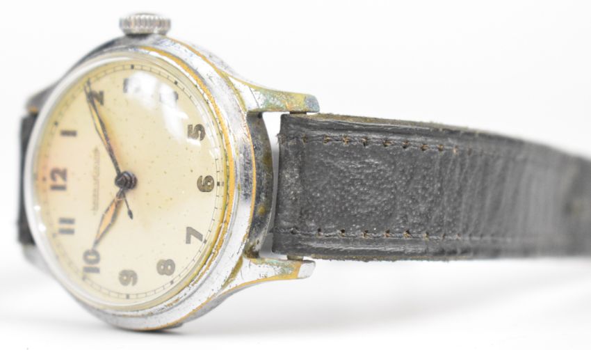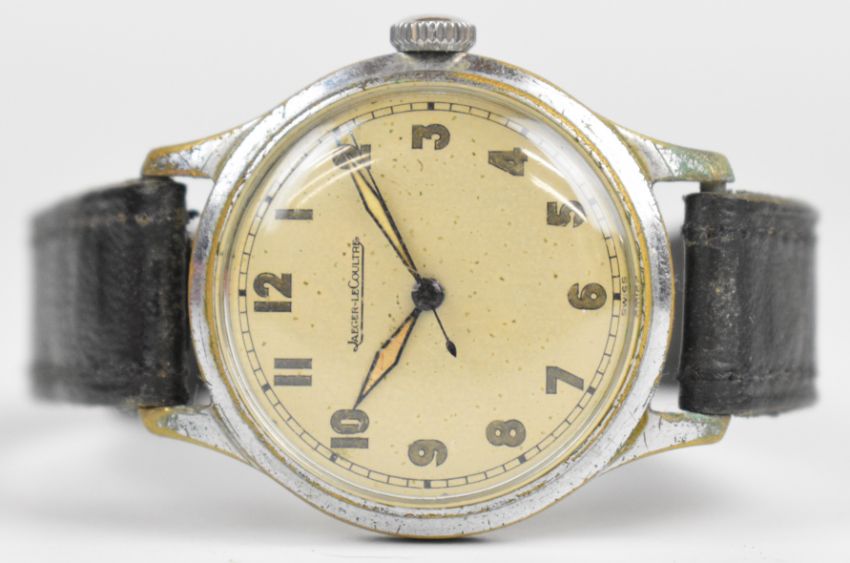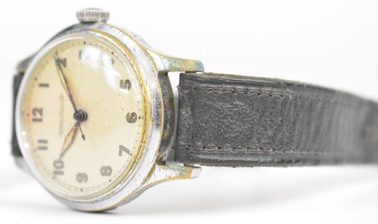 Jaeger LeCoultre gentleman's military style wristwatch with luminous hands, Arabic numerals, silver dial, nickel plated case and signed movement, case diameter 33mm, serial number 225782.