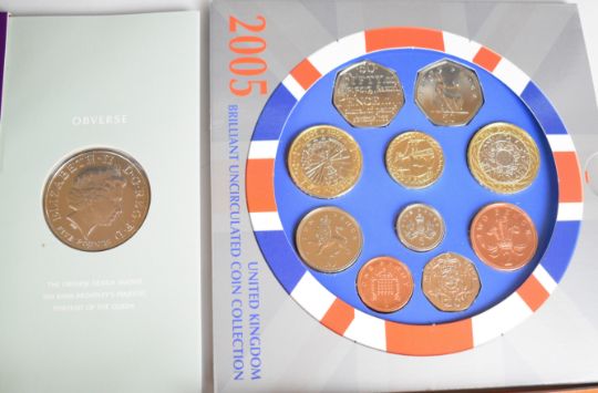 A small collection of United Kingdom coins and banknotes including 2004, 2005 and 2006 Royal Mint uncirculated sets, various Bank of England banknotes, a Great Britain 1890 half crown and three silver proof commemorative coins including a 2003 Solomon Islands .999 silver $25 commemorating Concorde, a 1977 sterling silver Silver Jubliee crown and a 1978 Bahamas $10 coin commemorating the 5th Anniversary of Independence.