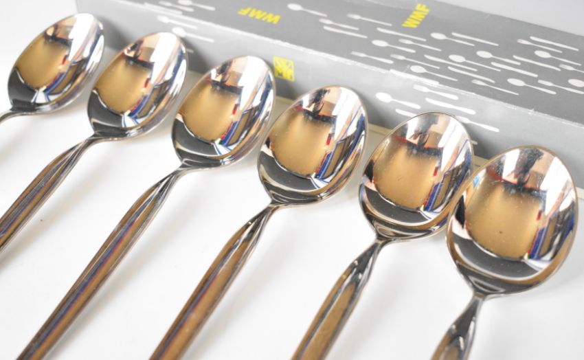 WMF Florenz pattern six place setting canteen of 800 grade silver cutlery, comprising six each of forks and spoons and nine knives, each marked WMF and with German 800 grade silver marks, the knives having stainless steel blades with WMF marks, length of spoons 20cm, weight of spoons and forks 600g, weight of knives 524g all in, all in WMF boxes,