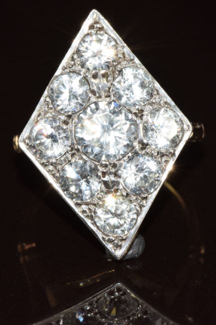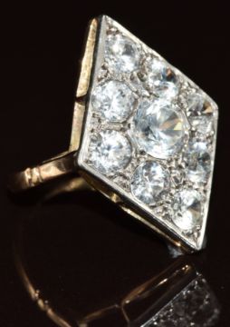 An 18ct rose gold ring set with white sapphires in a marquise platinum setting, 5.7g, size L