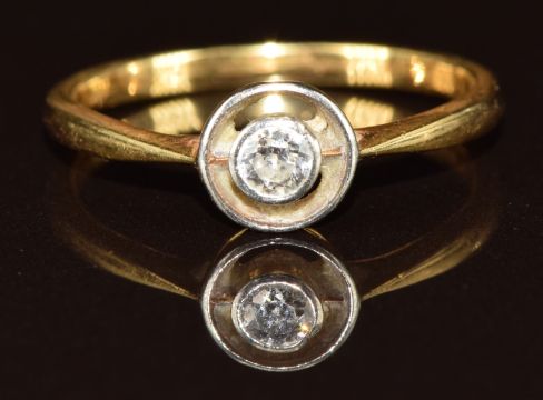 An 18ct gold ring set with a diamond of approximately 0.1ct in a platinum setting, 2g, size M