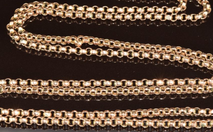 A c1900 9ct rose gold guard chain, 37.7g, 146cm