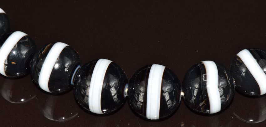 A necklace made up of graduated banded agate beads, largest bead 18mm, smallest 10mm, 180g, 60cm