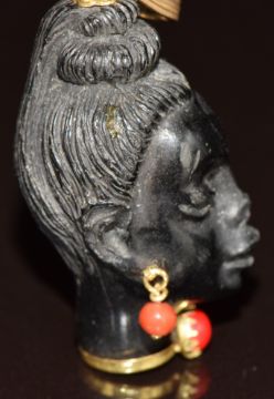 Carved blackamoor pendant with 14k gold pendant loop and 18k gold base marked 'Corletto'