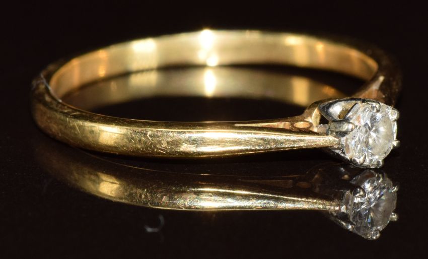 An 18ct gold ring set with a diamond, 1.8g, size K