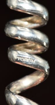 Vivianna Torun Bülow-Hübe modernist sterling silver spiral pendant, Stockholm, Sweden 1990's, 22g, 14.5cm