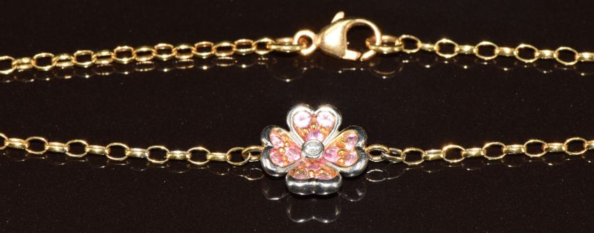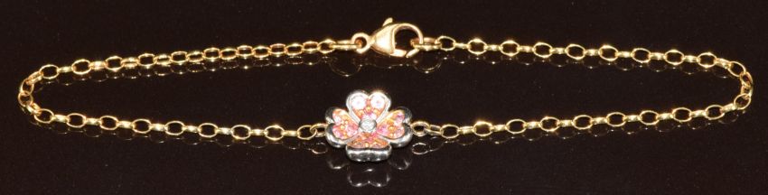 An 18ct gold bracelet in the form of a flower set with a diamond surrounded by amethysts, 3.4g, 18.5cm