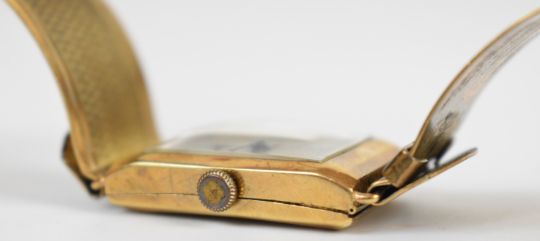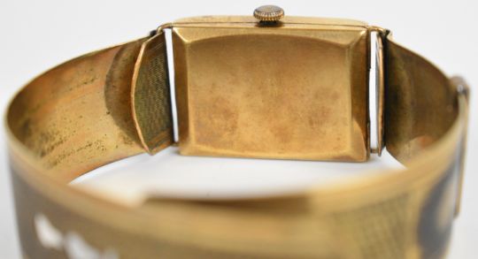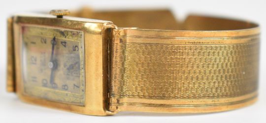 Rotary Maximus 9ct gold gentleman's wristwatch with blued hands, black Arabic numerals, silver dial and 15 jewel movement, on gold plated bracelet, case width 22mm, serial number 48997.