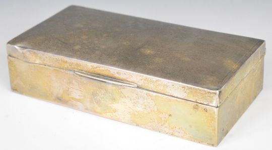 Hallmarked silver cigarette box, Chester 1932, maker E J Trevitt & Sons, width 17cm