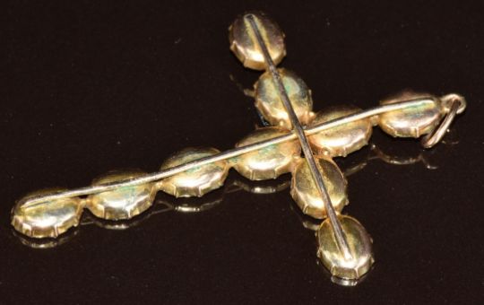 Victorian cross pendant set with ten foiled garnets (one replaced and not in original foiled setting), 4.4g, 5.5 x 4cm