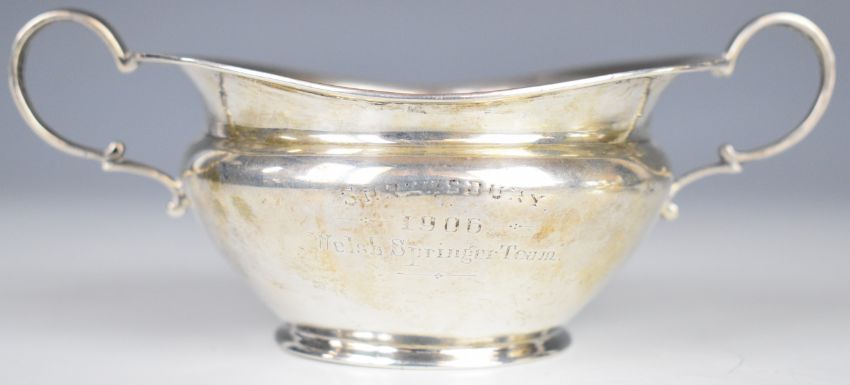 Two Edward VII hallmarked silver twin handled sugar bowls, width of larger 14cm, weight of both 167g