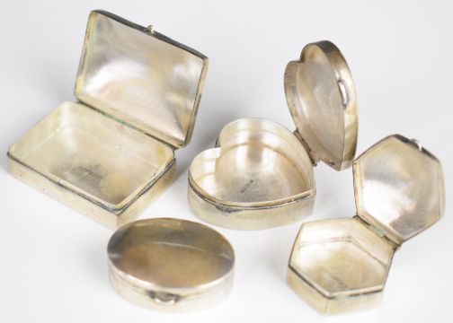 Eleven various modern hallmarked silver pill boxes or pots, width of largest 5.5cm, weight of all items 140g