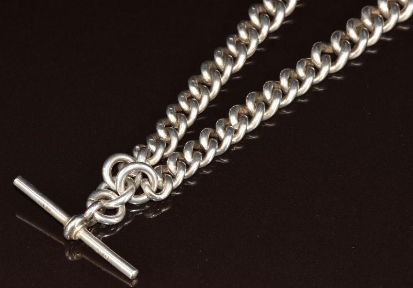 A c1900 silver Albert / watch chain, 151g, 60cm