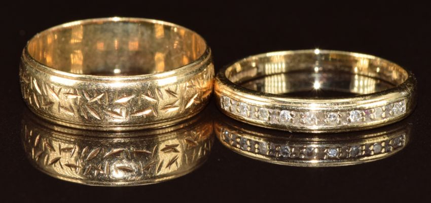 Two 9ct gold rings, one set with diamonds, 4.2g, size N & O