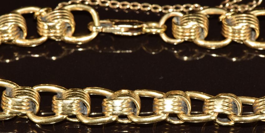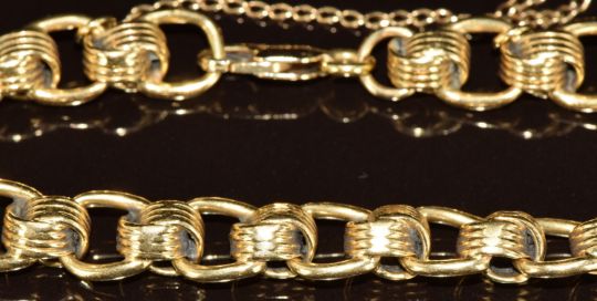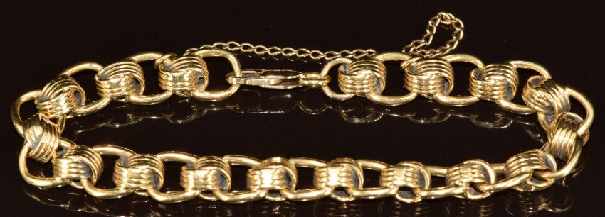 An 18k gold bracelet made up of knotted and oval links with 14k gold clasp, 38.4g, 19cm