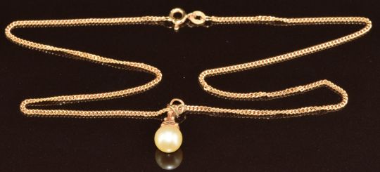 A 9ct gold pendant set with a pearl, on 9ct gold chain, 4.5g, 40cm