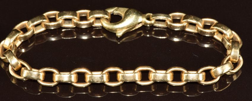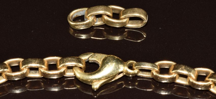 A 14k gold bracelet made up of oval links, with four extra links, 36.2g, 19.5cm