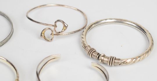 Ten silver bangles, 165g