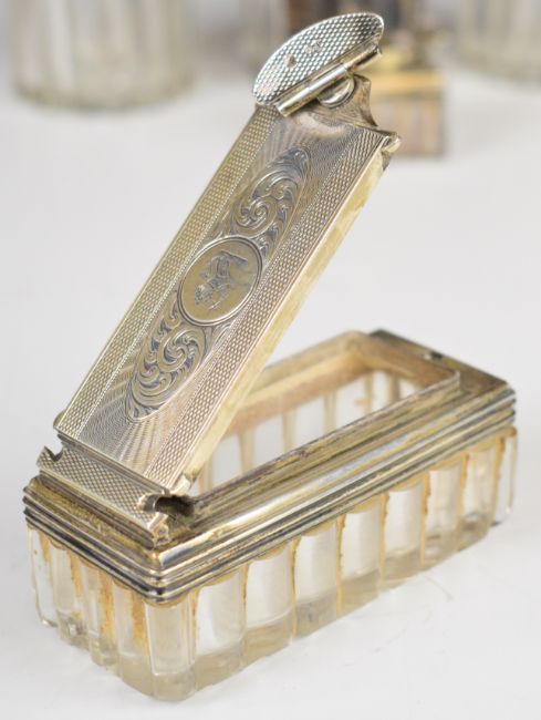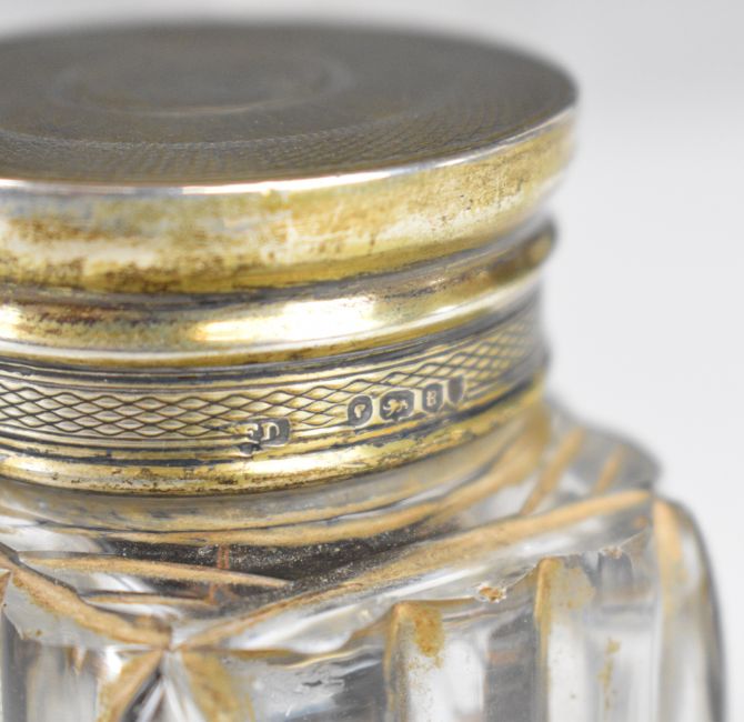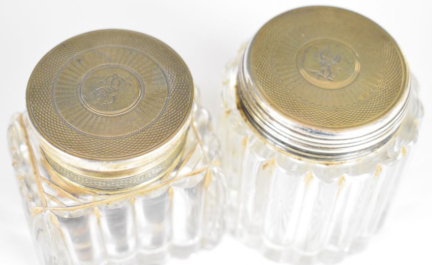Six George VI and Victorian hallmarked silver lidded cut glass dressing table pots, London 1837, maker Frances Douglas, height of tallest 6.5cm