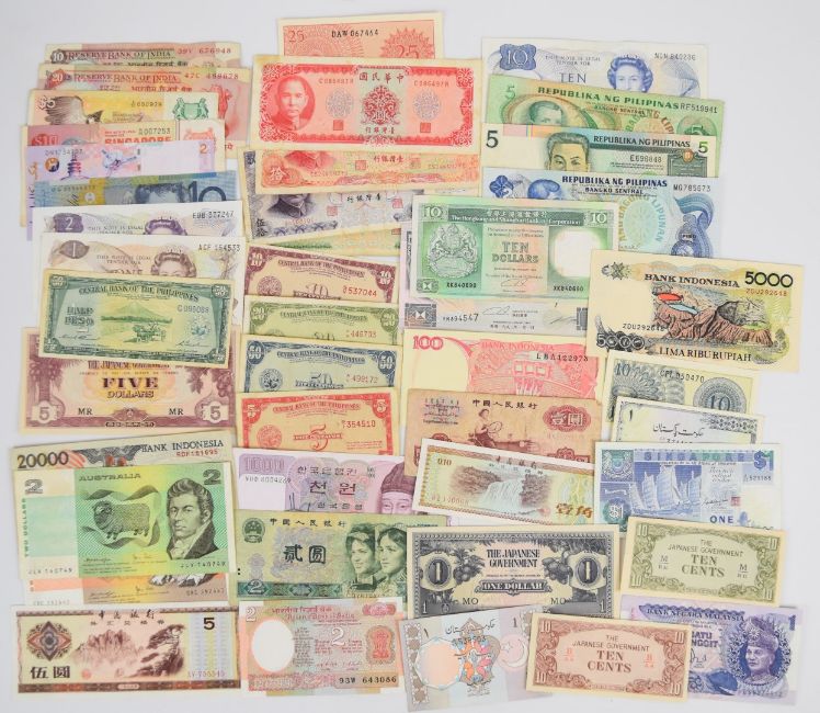 Collection of approximately one hundred and forty mixed grade world banknotes in an album including Switzerland, The Netherlands, Ceylon, Portugal, Spain, Croatia, New Zealand and others, includes 1979-dated Ceylon 2, 5, 10, 20, 50 and 100 Rupees and some still convertible currency.