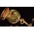 Unnamed 14ct gold keyless winding open faced pocket watch with gold hands, black Arabic numerals, enamel decoration to the engraved case and unsigned movement, case diameter 31mm, serial number 42192, 23.7g.