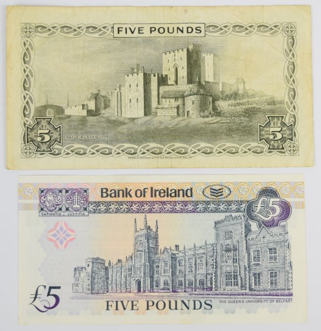Irish, Northern Irish and Isle of Man banknotes comprising Ulster Bank £10, £5 and £1, Bank of Ireland £10 and £5, Northern Bank £20, £10 and £1, Provincial Bank of Ireland £1, Banc Ceannais Central Bank of Ireland £10, 2x £5 and one £1 and Isle of Man £10, 2x £5, 4x £1 and one 50p