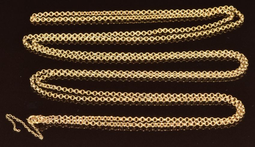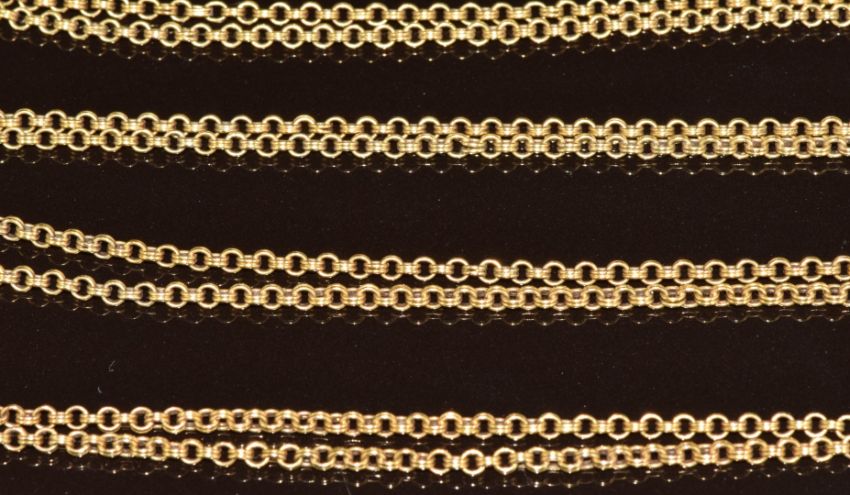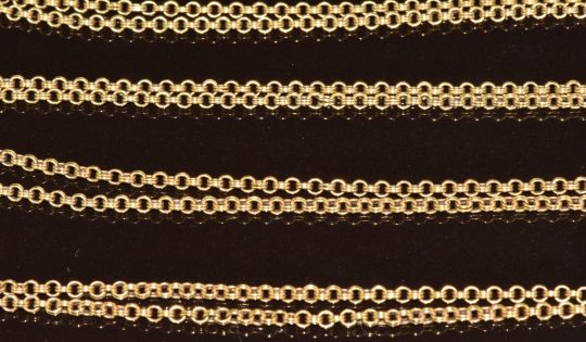A c1900 15ct gold guard chain made up of circular ridged links, 25.5g, 142cm (no clasp)