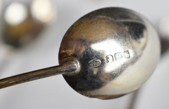 Georgian and later hallmarked silver cutlery to include grape scissors, sugar nips and a set of six coffee spoons, length of longest 18.5cm, weight of all items 266g all in