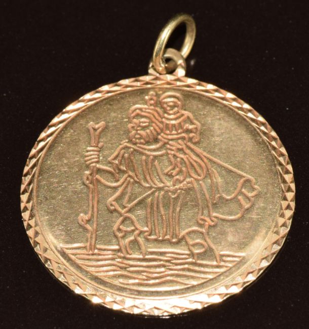 A 9ct gold St Christopher pendant, 2.7g, 2.2cm