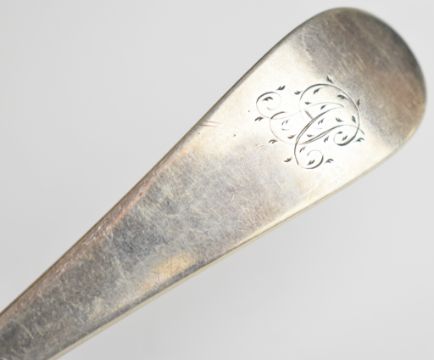 Georgian and later hallmarked silver cutlery comprising table spoon, sifter spoon, King's pattern salt spoon and a mustard spoon, length of longest 22.5cm, weight of all items 129g
