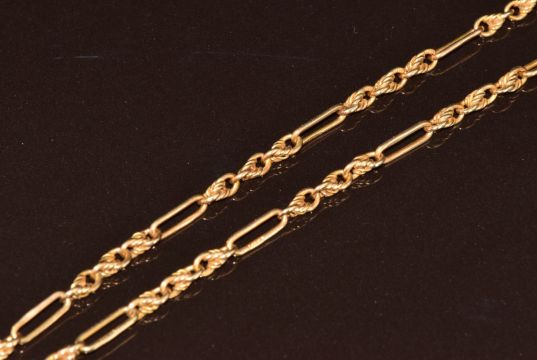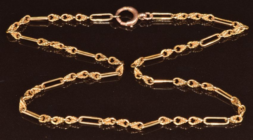 A c1910 9ct gold necklace made up of elongated and knotted links, 9.8g, 41cm