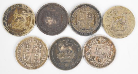 Approximately 222g Georgian, Victorian and later British silver coinage to include 1818, 1819, 1820 and 1822 crowns, 1902 Edward VII and 1914 George V florins, shillings to include 1816 George III 1826 George IV and 1839 Queen Victoria and various four pence coins including William IIII