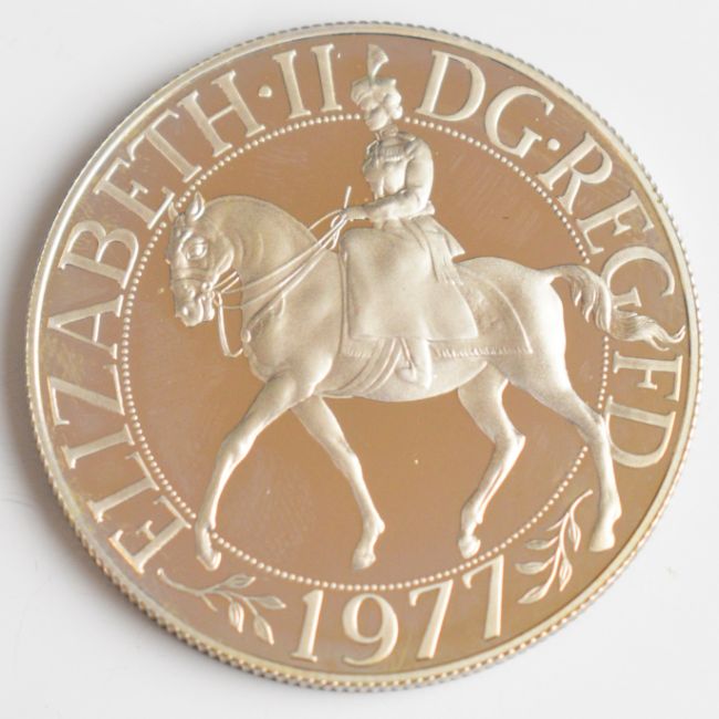 Seven silver proof coins comprising Pobjoy Mint Appeal Crown, Crown of Crowns, 1977 Royal Salute set of four and a cased Royal Mint 1977 crown, total weight of all coins 197g