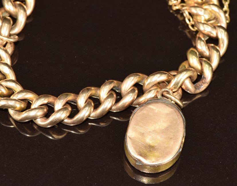 A 9ct gold curb link bracelet (18.7g) with Victorian charm set with bloodstone, 18cm