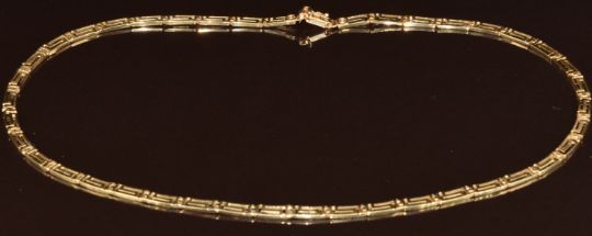 A 14k gold necklace made up of Greek key rectangular links, 13.1g