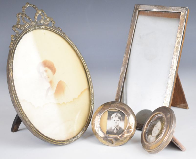 Four silver photograph frames, the larger rectangular one hallmarked, height 19.5cm, the large oval example having Dutch silver marks, the other two being hallmarked