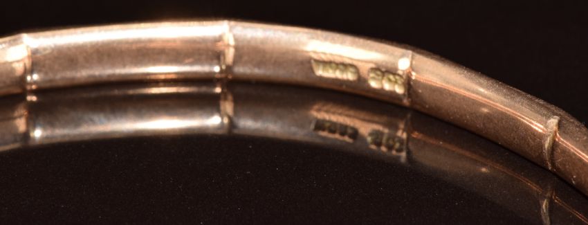 Art Deco 9ct rose gold bangle, 18.3g, 7cm