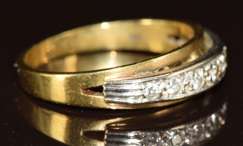 A 18ct gold ring set with diamonds, 3.6g, size M