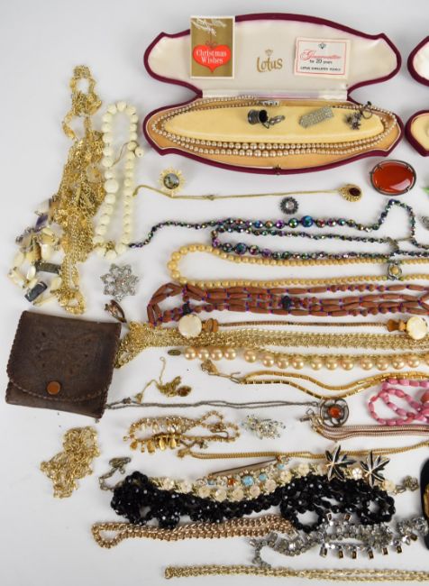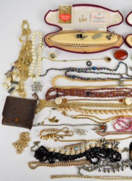 A collection of costume jewellery including Hollywood necklace, Scottish silver pendant, brooches including silver, agate, Miracle, Sphinx, two cameos and vintage examples, Napier earrings, diamanté, etc