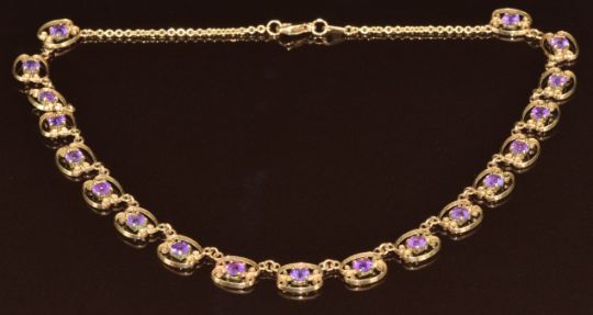 A 9ct gold necklace set with nineteen round cut amethysts, 14.6g, 36cm
