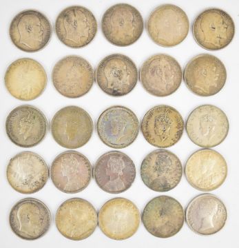 Victorian and later silver Rupee coins to include an 1840 example, comprising 234g of 0.917 silver and 58g of 0.500 silver