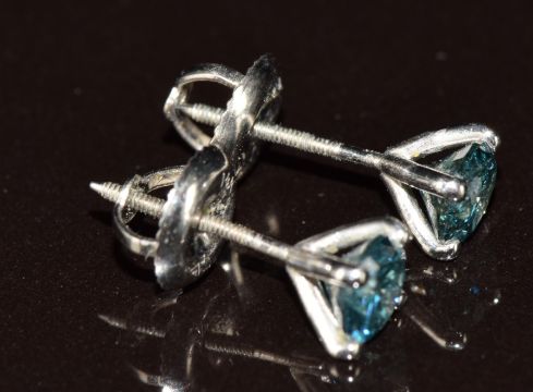 A pair of 14k white gold earrings each set with a blue diamond of approximately 0.45ct, with GIE report