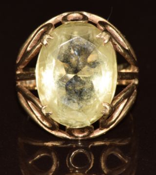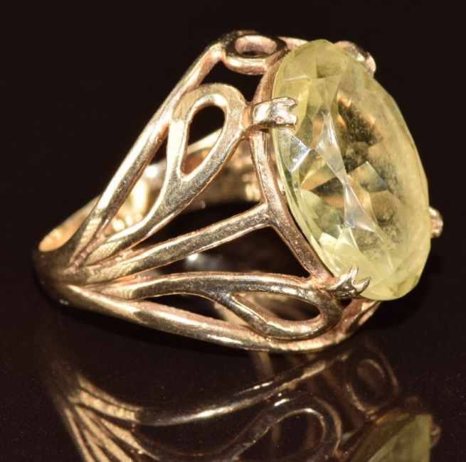 A 9ct gold ring set with an oval cut quartz, 5.1g, size L