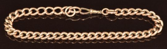 A 9ct rose gold curb link bracelet/ section of watch chain, 5.6g, 21.5cm