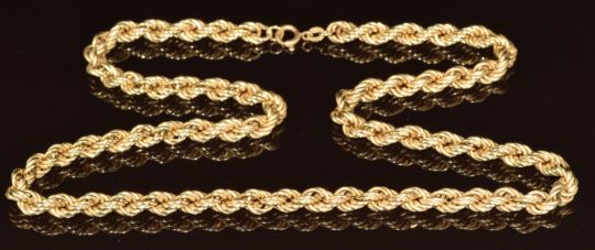 A 9ct gold rope twist necklace, 25g, 54cm